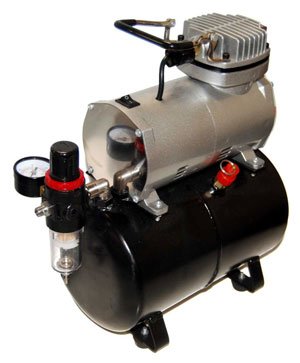Powerful: At 1/5 Horsepower this unit delivers more Air Volume (CFM) and Air Pressure (PSI) than any airbrush demands. Portable: Light-Weight, Compact and are Easy to Carry with the Built in Handle. Precise Air Adjustment: True Diaphram Pressure Regulator with Gauge and Water Trap Filter that provides precise adjustment of airflow and will ensure clean, dry air. Automatic On/Off Shutoff: Preset fo